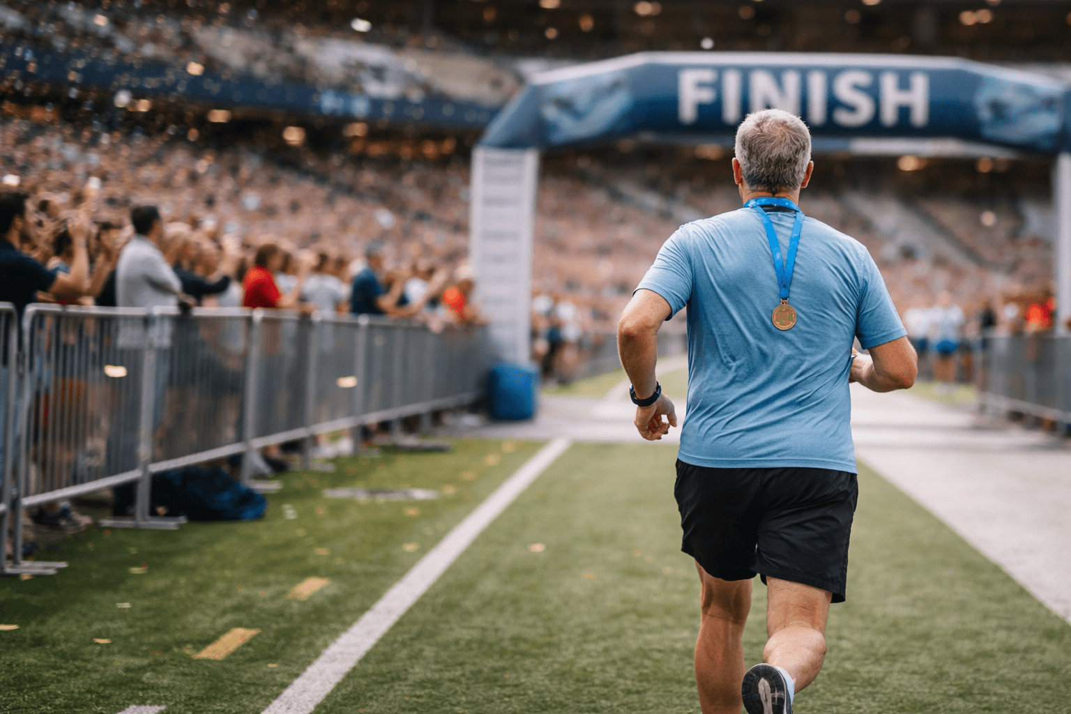 It felt great to cross the finish line. With a smile of relief on my face, I ran into the football stadium where the Cincinnati Bengals play while my three weary teammates clapped and cheered. I knew my wife Candy would be waiting. She had promised to take a picture of me crossing the finish line.