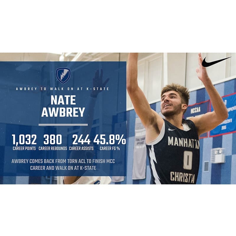 After a phenomenal career at Manhattan Christian College, Nate Awbrey has joined the Kansas State University basketball program as a walk-on.