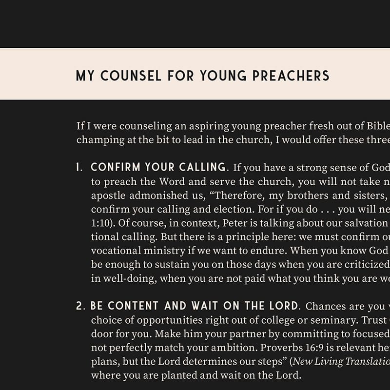 If I were counseling an aspiring young preacher fresh out of Bible college or seminary, champing at the bit to lead in the church, I would offer these three bits of advice.