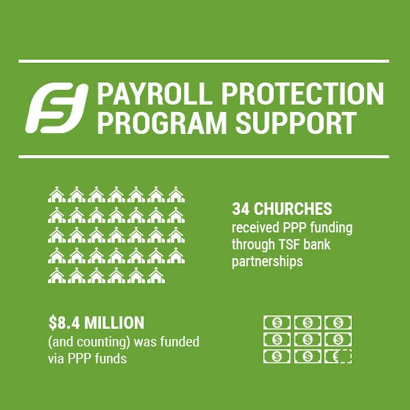 The three church extension funds that provide loans to independent Christian churches and churches of Christ have been working to accommodate and help their partner churches during the challenges brought on by the COVID-19 pandemic. The Solomon Foundation has thus far helped 34 churches secure $8.4 million in SBA Payroll Protection Program forgivable loans through its bank partnerships. TSF also initiated a special program for those unable to obtain PPP funds which has provided grants totaling more than $425,000 to 26 churches and organizations. (TSF and 13 partnering churches provided funds for this endeavor.) Additionally, the TSF Tithe program disbursed